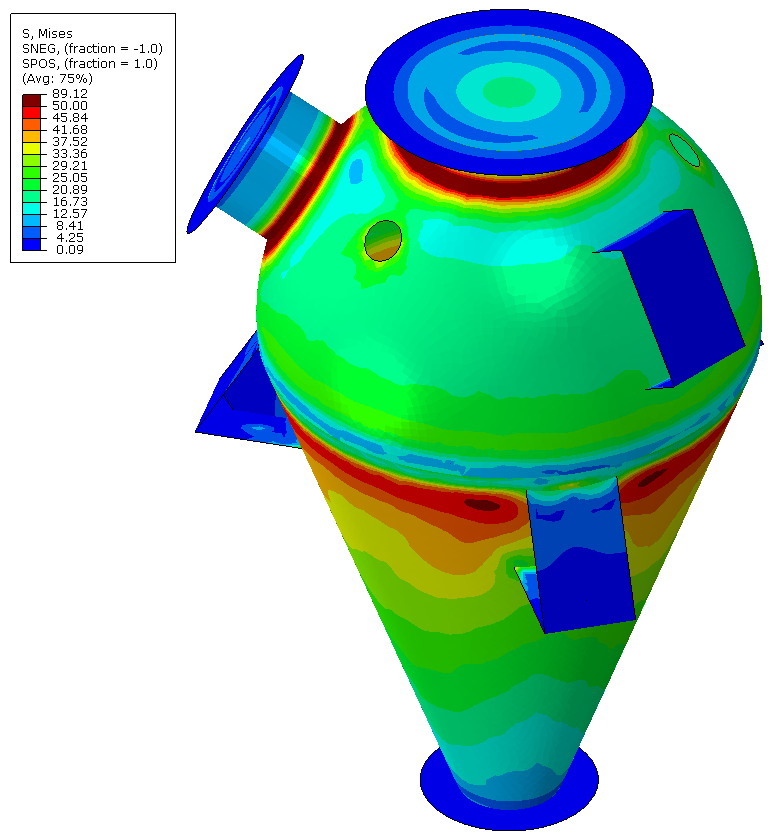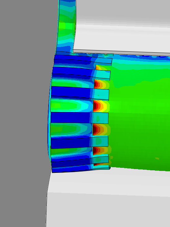 - sous forme de champs : déplacements(mm), contraintes de Von Mises (MPa), contraintes maximales principales (traction, MPa) et minimales principales (compression, MPa), pressions de contact (MPa), déformation élastiques (%), déformations plastiques cumulées (%), etc.